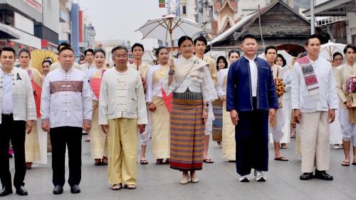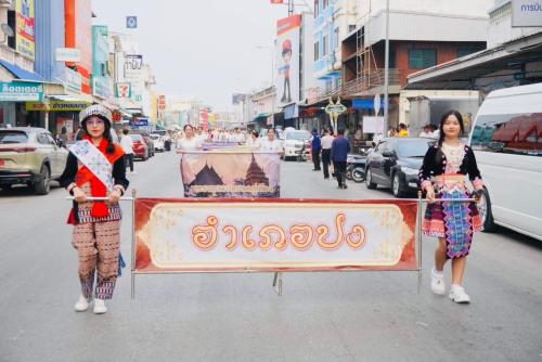 อำเภอปง โดยนายนาวิน สุธรรมเม็ง นายอำเภอปง พร้อมด้วยหัวหน้าส่วนราชการ กำนัน และประชาชน ร่วมเดินขบวนแห่เครื่องสักการะ ในการนี้ นางภาณี ยะตา พัฒนาการอำเภอปง ร่วมขบวนดังกล่าว